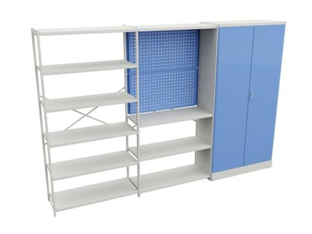A versatile shelving system that meets nearly all storage needs. Can be assembled to meet individual needs by combining shelves and cabinets, and by adding accessories as needed. The cabinets and shelves can also be used individually. Includes a wide range of accessories and add-ons for creating customised storage solutions. Can also be used as a screen. The cabinet can be moved by forklift.