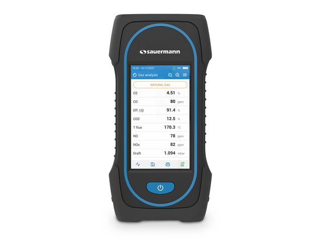 Gas and Smoke Analyzer Reads: NO, NO2, O2, CO2 and the Lambda value Sauermann Si-CA 130 Fuel Gas Analyzer Comprehensive, versatile analyser with touch-screen display