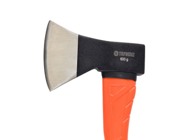 Cette hache de 600 g dispose d'une tête en acier au carbone et d'un manche orange et noir en fibre de verre. La partie basse est recouverte d'un revètement optimisant le grip. Vendu avec protection du tranchant.