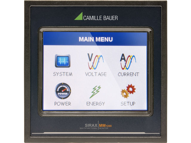 • Clear and unambiguous indication of measured values on TFT display • Easy operation and parameterisation via touchscreen or via CB-Configurator Software • Automatic cyclical scrolling of measured data • Integrated active and reactive energy meters