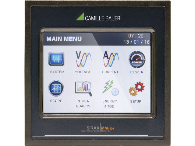 • Clear and unambiguous indication of measured values on TFT display • Easy operation and parameterisation via touchscreen or via CB-Configurator Software • Monitoring and analysis of harmonics (U, I) • Integrated active and reactive energy meters