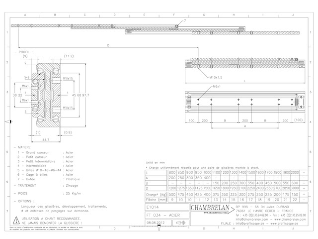 Slide over extention Steel E1014 - CHAMBRELAN GLISSIERES A BILLES et RAILS DE GUIDAGE INDUSTRIELS