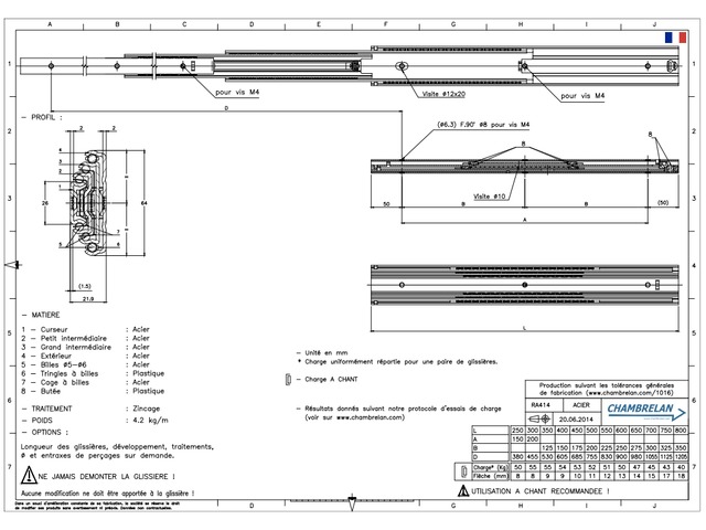 Slide over extention Steel RA414 - CHAMBRELAN GLISSIERES A BILLES et RAILS DE GUIDAGE INDUSTRIELS