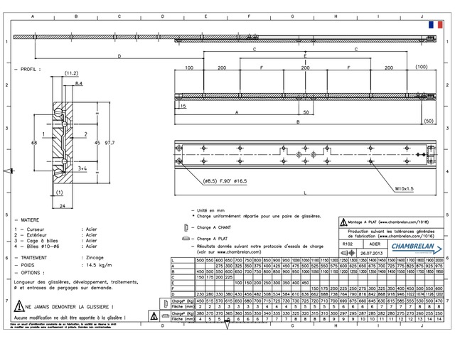 Slide partial extension Steel R102 - produit présenté par CHAMBRELAN GLISSIERES A BILLES et RAILS DE GUIDAGE INDUSTRIELS
