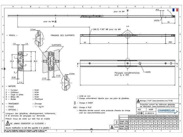 Slide partial extension Steel R20 - produit présenté par CHAMBRELAN GLISSIERES A BILLES et RAILS DE GUIDAGE INDUSTRIELS