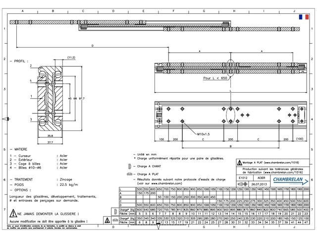 Slide total extention Steel E1012 - CHAMBRELAN GLISSIERES A BILLES et RAILS DE GUIDAGE INDUSTRIELS