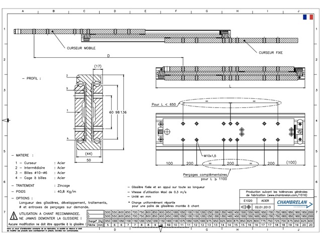 “ Slides sold individually Total extension (+/-100%) Zinc plated cold drawn steel Very heavy load Long lifespan Reliability RoHS ”