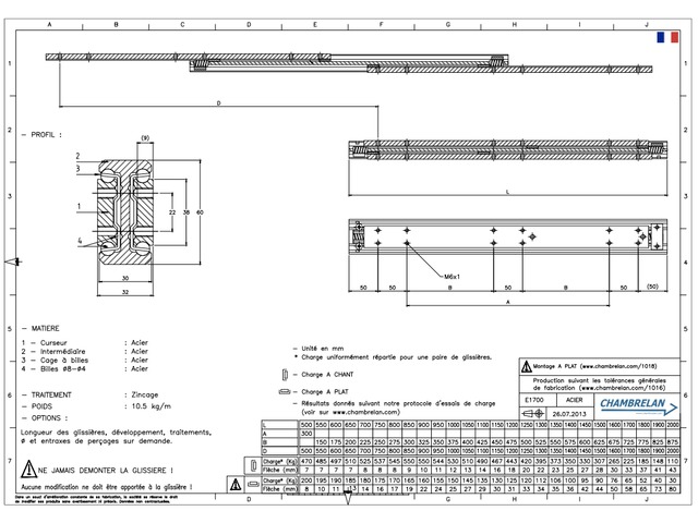 Slide total extention Steel E1700 - CHAMBRELAN GLISSIERES A BILLES et RAILS DE GUIDAGE INDUSTRIELS