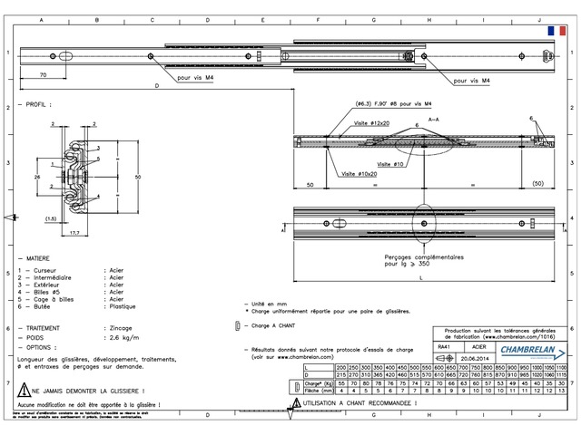 Slide total extention Steel RA41 - CHAMBRELAN GLISSIERES A BILLES et RAILS DE GUIDAGE INDUSTRIELS