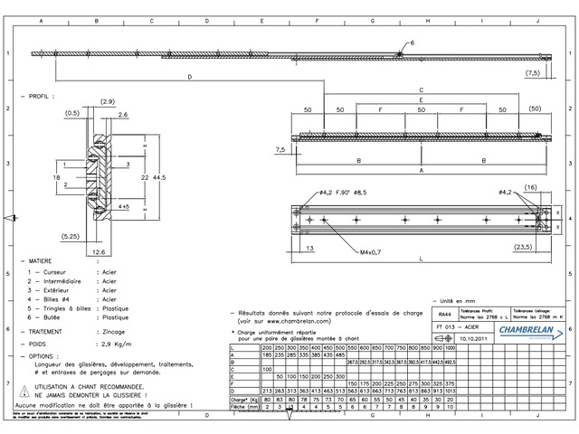 Slide total extention Steel RA44 - CHAMBRELAN GLISSIERES A BILLES et RAILS DE GUIDAGE INDUSTRIELS
