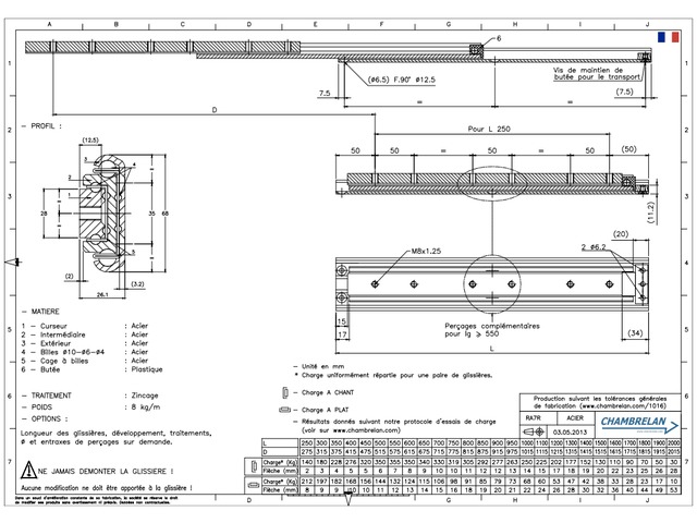 Slide total extention Steel RA7R - CHAMBRELAN GLISSIERES A BILLES et RAILS DE GUIDAGE INDUSTRIELS
