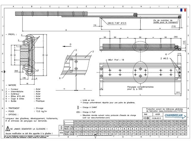 “ Slides sold individually Total extension (+/-100%) Zinc plated cold drawn steel High load capacity Long lifespan Reliability RoHS ”