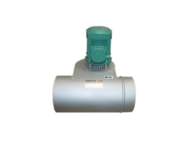 Draught accelerator, centrifugal forward curved and pressed blades wheel TUE or special; tube housing, inlet and outlet in line, steel or stainless steel.