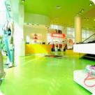 Colourful, strong impact, modern, smooth gloss self smoothing resin floor finish.