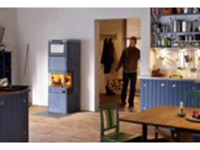 “ The soapstone model can be supplemented with both a fan and heat tank, which gives 18 hours of heating after the fire has gone out. The amount of hot air can be regulated using the damper on the upper side of the stove. ”
