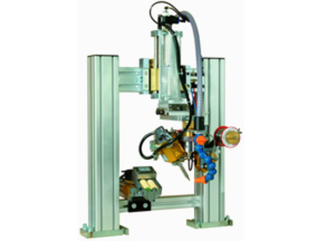 The movements are performed by pneumatic axes and the micro-processor control enables the operator to pilot the axes and set the soldering parameters.
