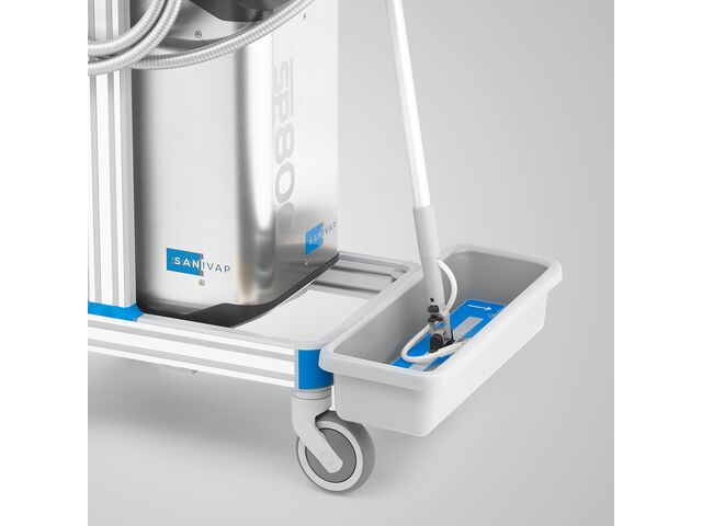 The SP800 Kit consists of a steam generator and a cart compatible with a wide range of accessories. It ensures bionic cleaning of surfaces: floors, ceilings, walls, furniture, medical devices...
