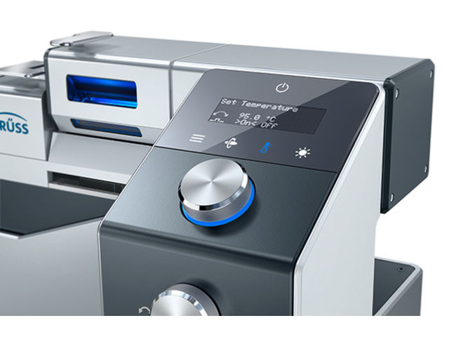 Efficient and flexible temperature controlThe speedy capillary changeover is achieved not least by the forgoing of a liquid temperature control, which at the same time saves the need for an additional thermostat. The integrated electric heater controls the target temperature quickly and accurately and is characterized by its high temperature stability. A cryostat can also be connected for analyses carried out at below room temperature. An accurate infrared sensor measures the temperature contactless and relays the thermal conditions very close to the drop.