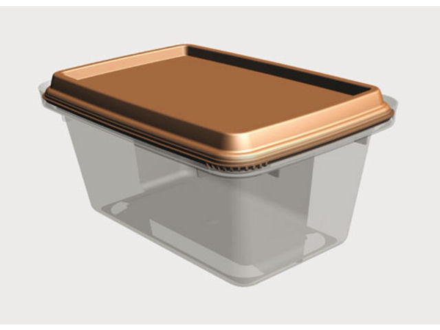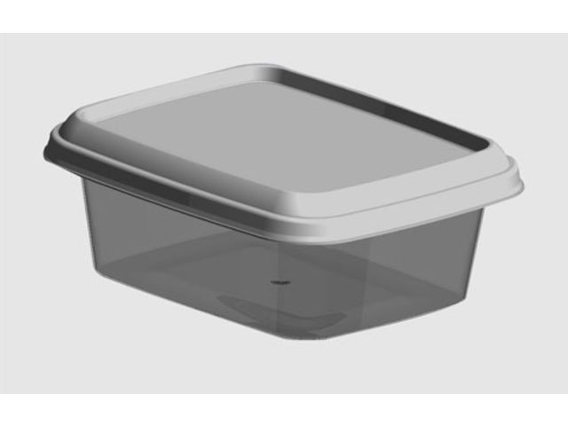 Rectangular injected plastic tray with a tamper evident closure. A lid is available. This packaging is well suited for ice cream, fruit, veggie, ready meal, frozen product, meat, deli, pastry, cake, seafood, dairy product…