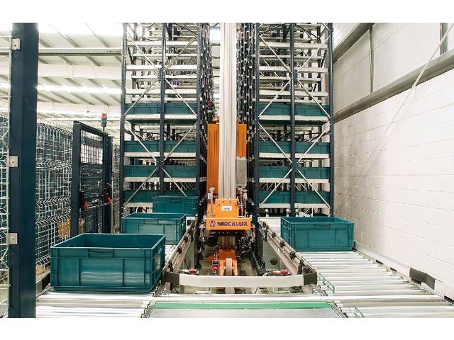 The conveyors then take the box to the operator and once he/she has finished the job, it is returned to the stacker crane which then places it back in the racking. The whole system is controlled by a management software package which registers the location of all the materials in the warehouse and keeps a real time inventory.
