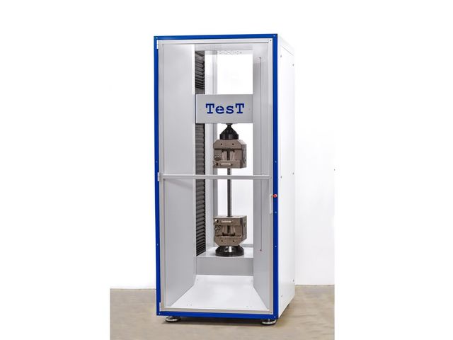 Model 114 is a stand-alone-maschine with a very stiff testing frame for measuring ranges between 200 and 400 kN. Due to the dimensioning of the load frame, it is possible to use the device as calibration machine. It is optionally possible to control by means of the plug-in-board PC-Card 822 with the software TesTWinner or via the simple electronics 810. Consistent with all two-pillar TesT-universal testing machines the upper working space is as well usable and is only to be selected by means of the software prior to the test. In the standard version the upper working space has been designed for loads of max. 20% of the nominal load. On demand an extension to 100% is possible. Thus, time-consuming modifications can be ommitted. Extensive Accessory and versatile Clamping Devices are certainly available.