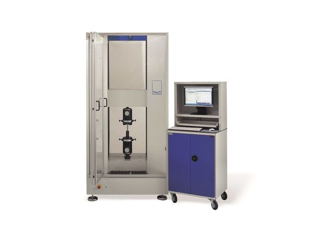 Model 115 is a stand-alone-maschine for measuring ranges between 500 and 600 kN. It is optionally possible to control by means of the plug-in-board PC-Card 822 with the software TesTWinner or via the simple electronics 810. Consistent with all two-pillar TesT-universal testing machines the upper working space is as well usable and is only to be selected by means of the software prior to the test. In the standard version the upper working space has been designed for loads of max. 20% of the nominal load. On demand an extension to 100% is possible. Thus, time-consuming modifications can be ommitted. An extensive spectrum of Accessory and manifold Clamping Devices is also available.
