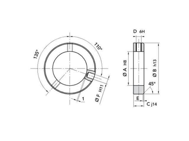 Several models of tightening ring are available such as: split steel stop ring, zinc plated stop ring and stainless steel stop ring.
