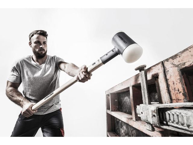The head of the SUPERCRAFT mallet is filled with steel shot. This means that when the workpiece is impacted, the energy of the shot is transferred with a slight delay. The reduced rebound allows the impact energy to be absorbed, resulting in extremely powerful impact without vibration which is much easier on your joints. Additionally, an advantage over steel mallets is the reduced noise level.