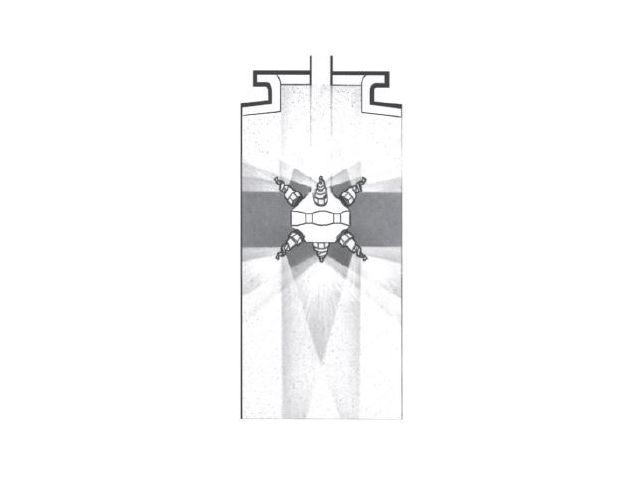 • Each nozzle in the stationary cluster is a BETE clog-resistant spiral nozzle of the TF Series
