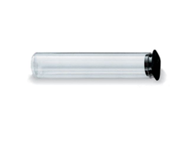 Round fixed length packaging tube with plug-closure. Sturdy packaging tube with secure plug-closure. Available in various fixed lengths square plug prevents rolling. Durable and reusable. Available with hanging loop