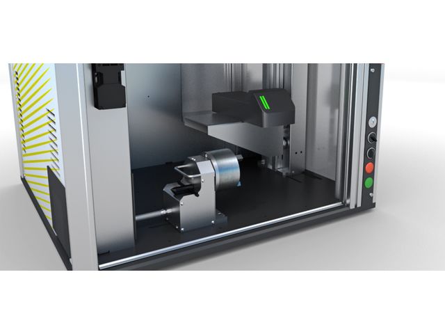 IntelligentThe digital management of the Z axis ( maximum stroke of 300mm) allows the marking of all your pieces. The rotary axis, in option, ensures a marking on 360°.
