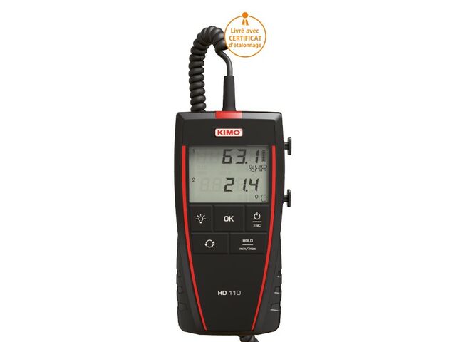 Kimo’s HD 110 handheld thermo-hygrometer measures relative humidity, temperature and dew point.