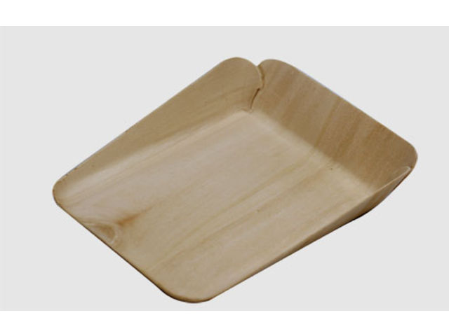This triangular thermoformed wooden tray is available with or without parchment paper. You can package cheese, piece of cake or pie...