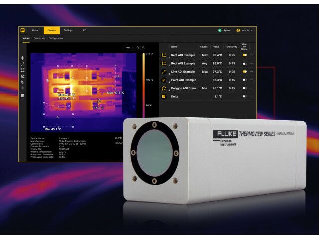 TV30 can interface directly to factory automation equipment, 3rd party software such as Labview, or Fluke Process Instruments ThermoView software. By incorporating a built-in I/O for automation applications in a small foot print, you can expand your field of view by providing continuous infrared images, recording, and actionable analytics right at your fingertips.