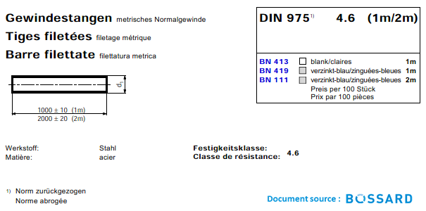 Threaded Rods : Class 4.6 Steel - Threaded Rod, 4.6 Steel, DIN 975