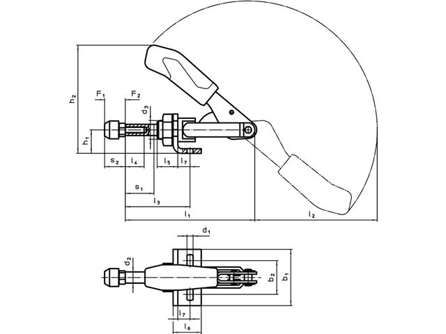 The "toggle" principle of the toggle clamp allows a large and quick opening of the clamp. If unclamped the work pieces are completely cleared for unimpeded removal. The large power transmission results maximum clamping force by low hand force. The clamps are self-arresting they remain locked, resisting the force produced when machining components.