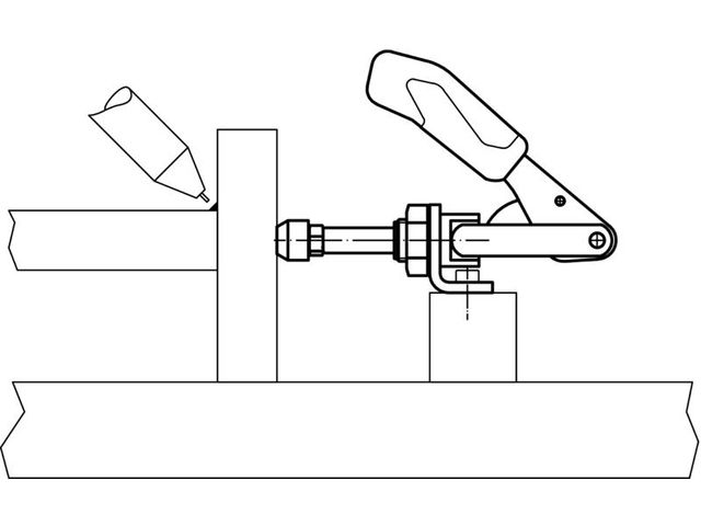 These toggle clamps can be used in the metal working industry when drilling, welding, bending, grinding, testing and fitting as well as in the wood and plastic industry in glueing, drilling, cutting and milling jigs.