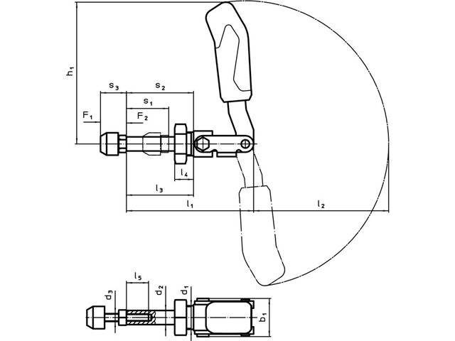 The "toggle" principle of the toggle clamp allows a large and quick opening of the clamp. If unclamped the work pieces are completely cleared for unimpeded removal. The large power transmission results maximum clamping force by low hand force. The clamps are self-arresting they remain locked, resisting the force produced when machining components.
