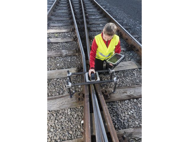 The non-contact Calipri C42 measurement device with infrastructure measurement modules meets the rail industry's need for a simple profile gauge with user-independent results for complete track testing. CALIPRI stands for multifunctionality all along the line. The non-contact measuring technology allows the inspection of rail profile, switch profile and track geometry with one and the same measuring device. The patented CALIPRI principle automatically corrects user errors and thus leads to reproducible measurement results. The measuring system consists of a sensor and a tablet PC for defining the measuring sequence and entering limit values. Tolerances that are exceeded are indicated to the user by a traffic light system. The measurement data can then be printed or exported as a report.