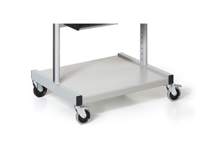 • This product includes a T-shape steel frame coated with a semiconductive ESD paint, 3 aluminium rails, an ESD-laminated bottom shelf, as well as castors of Ø 100 mm, two of which are semiconductive and two with brakes.