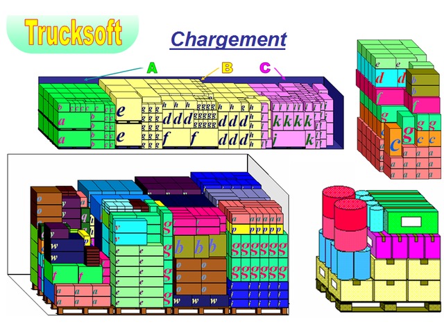 Trucksoft calculates your loading plans according to many alternatives methods that can be adapted to your needs : stacking, possible overflow, regroupings, exclusions, heterogeneity on 1, 2, or 3 levels, multi-customers (A, B, C, D…)…