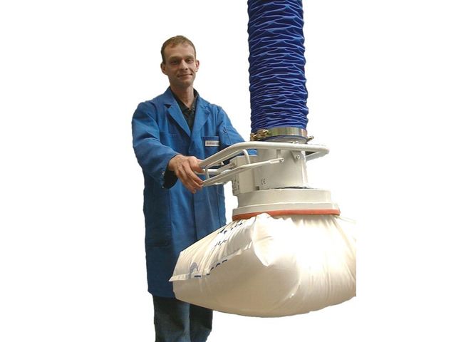 The JumboSprint is equipped with a bow-shaped operator handle which extends all the way around the unit. This allows the user to optimally position it on compact goods such as bags or rubber bales. The load is raised by pulling up on the handle lever and lowered by pushing down.