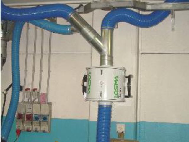 It can be installed vertically or horizontally. It can be positioned close to the aspirator or the machine tool or on an existing tube. Given its configuration and high adaptability, it can also be a valid aid in centralised systems to reduce the quantity of pollutants that circulate in the tubes which tend to accumulate inside them. The two versions differ as the fluids flow in the opposite direction.
