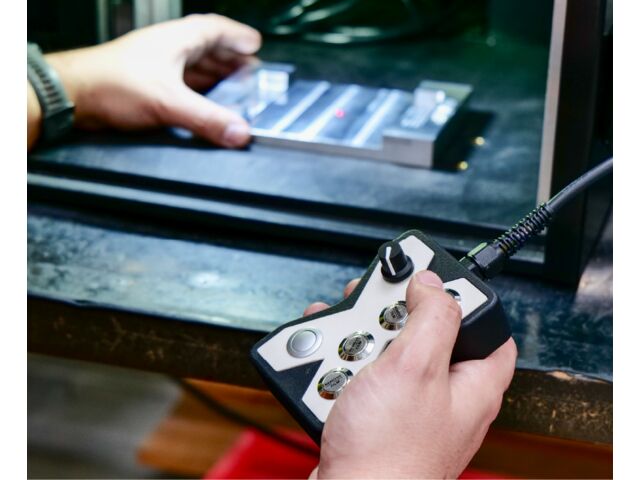 Its design is highly ergonomic for the user, whether the machine is used in a seated or standing position. Its removable remote control can be used to manage the speed of movement of the head on the Z axis, start or stop markings and control the station lighting. Its L-shaped side opening provides easy access to workpieces, and its base plate features insert to help clamp parts.