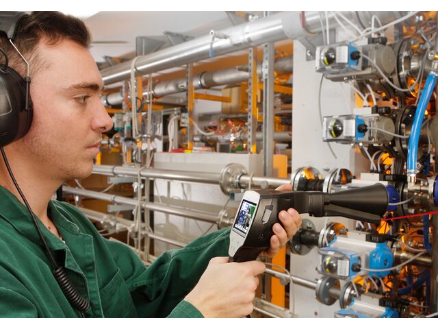 Shows exactly where compressed air leaks are on the screen and makes finding compressed air leaks much easier – even in harsh environments!