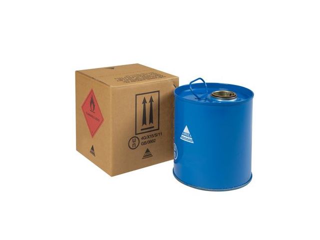 UN 4G box for 1 x 5L UN steel drum with flammable Liquid Hazard Label, 4G/X15/S - CODE 114