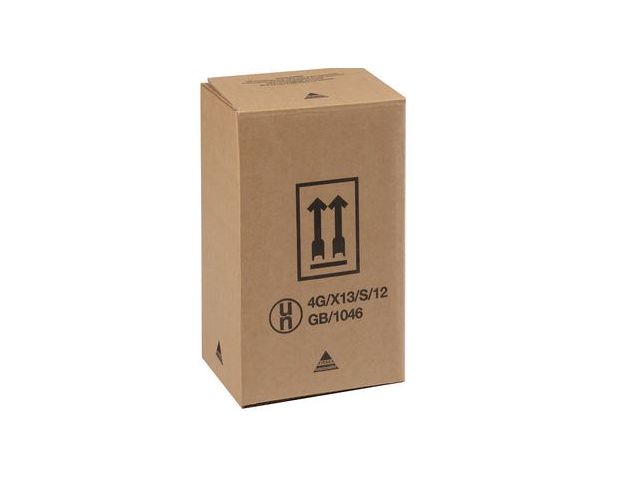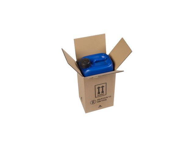 Ship up to 13kg of dangerous goods within a 2.5L or 5L tinplate or plastic jerrican inside this 4G fibreboard box – suitable to ship substances of all packing groups