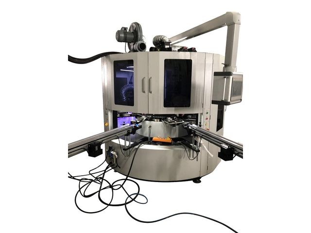 Automatic and universal CNC machine with multi-axis robot loading and unloading and conveyors.