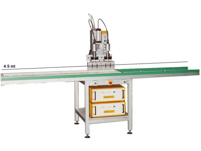 Ultrasonic welder USPE equipped with 2 generators with 2000 W – 20 kHz power. The 4,5 meter long base makes it particularly suitable for welding of large pieces. Each piece is sold with 3 strikes. An automatic positioning device helps the operator during assembling.