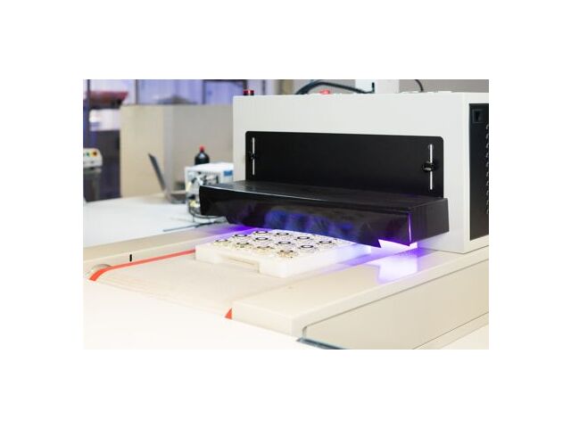 The conveyor KEOL-CONV8 CM is equipped with an LED lamp. Air cooling guarantees the longevity of the high-power system. The speed of the belt being adjustable, it is easy to control the automatic production line for the good polymerization of your adhesives or UV varnishes.